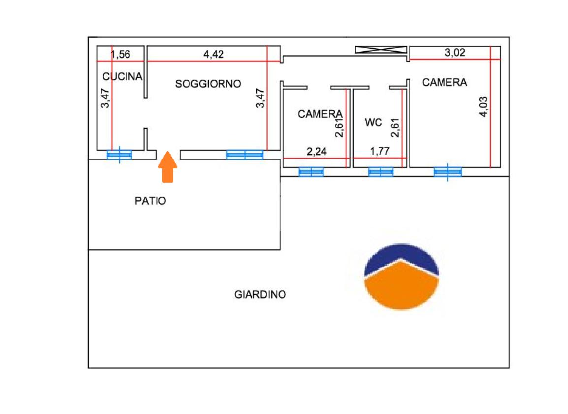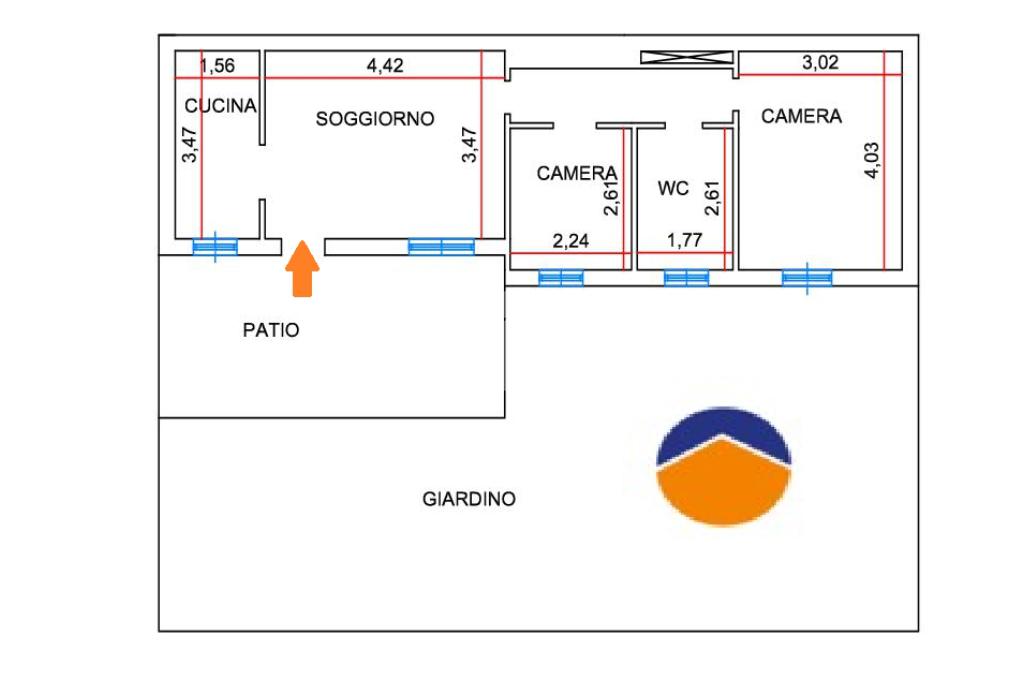 Superata la soglia d’ingresso veniamo accolti da un luminoso ed ospitale soggiorno con angolo cottura. Per mezzo del disimpegno giungiamo alla zona notte, composta da una camera, un bagno finestrato con doccia e una spaziosa camera matrimoniale con porta finestra con affaccio diretto sul giardino.