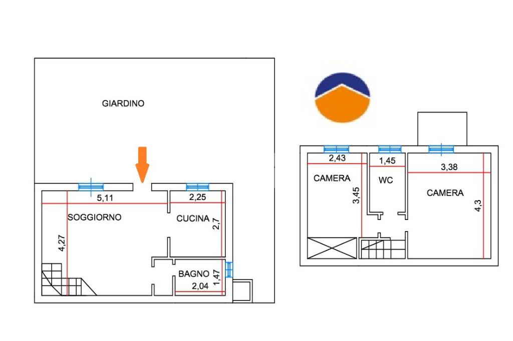 A completare il piano terra è presente un primo bagno, finestrato con box doccia.