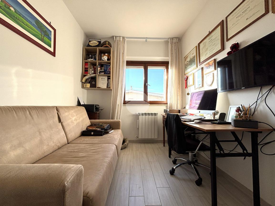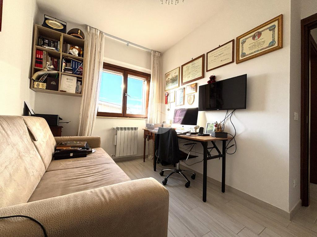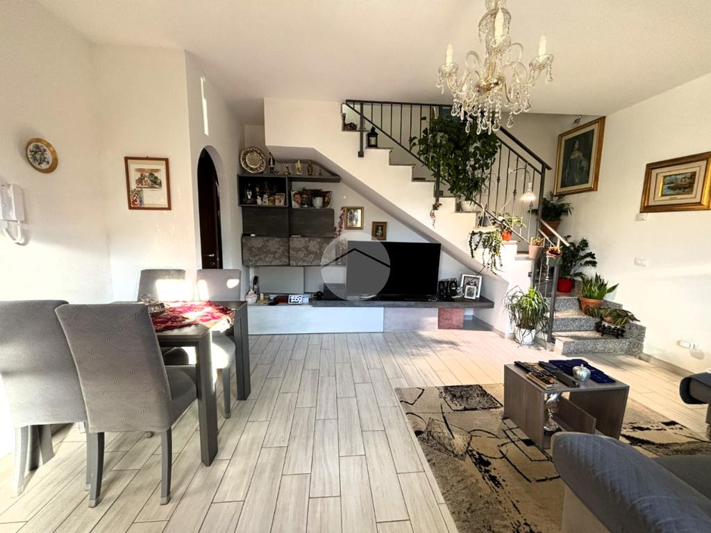 La soluzione si apre su un ampio soggiorno valorizzato da una porta- finestra che garantisce luce e accesso diretto agli spazi esterni con cucina a parte perfettamente funzionale.