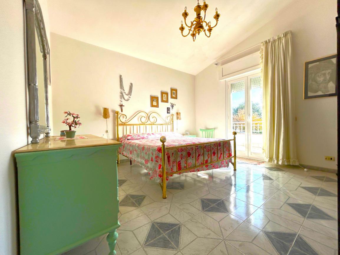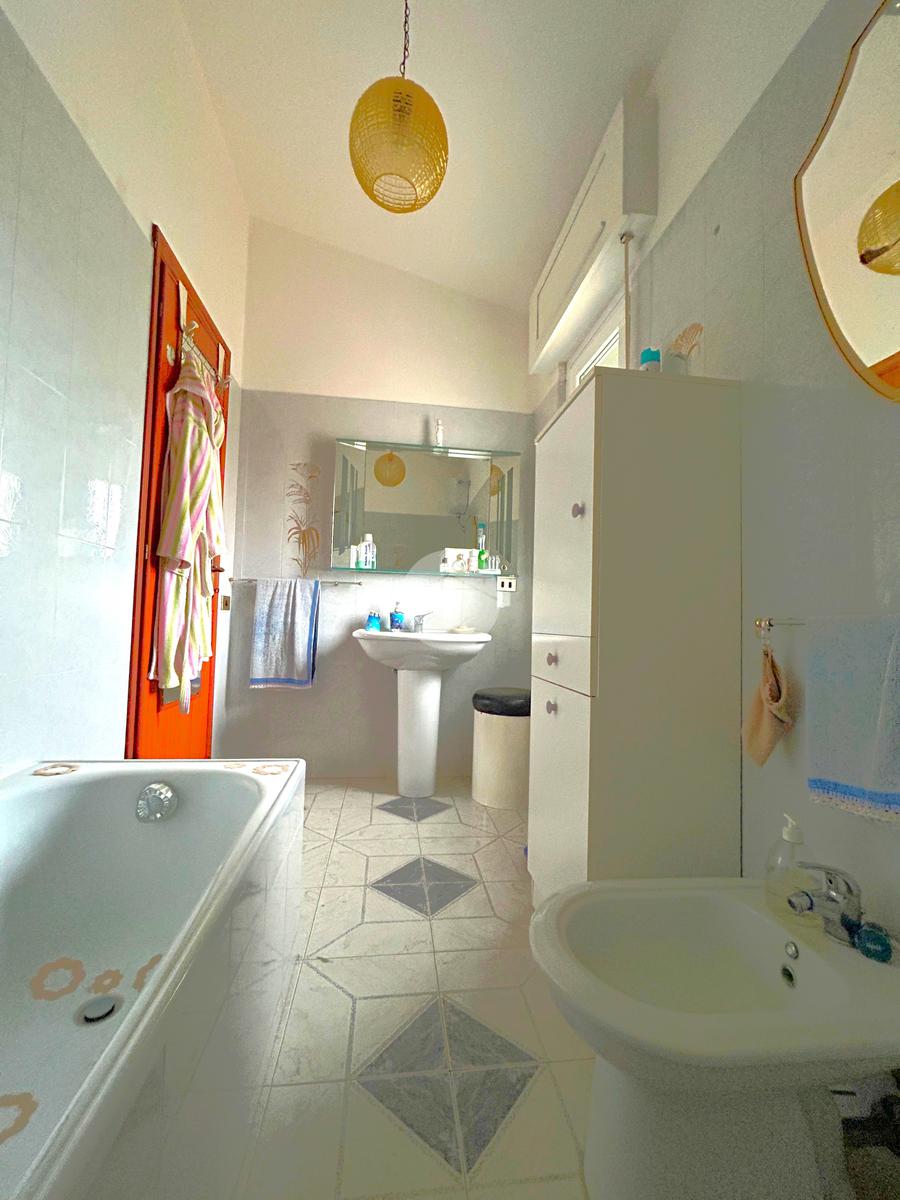 Salendo al piano superiore, troviamo la zona notte dove incontriamo la camera da letto principale, che si affaccia su un ampio terrazzo di circa 18 mq, ideale per creare uno spazio privato all'aperto. Una seconda camera, anch'essa dotata di porta finestra e comunicante con il terrazzo e la terza camera con balcone. Il piano si completa con un secondo bagno, finestrato con vasca.