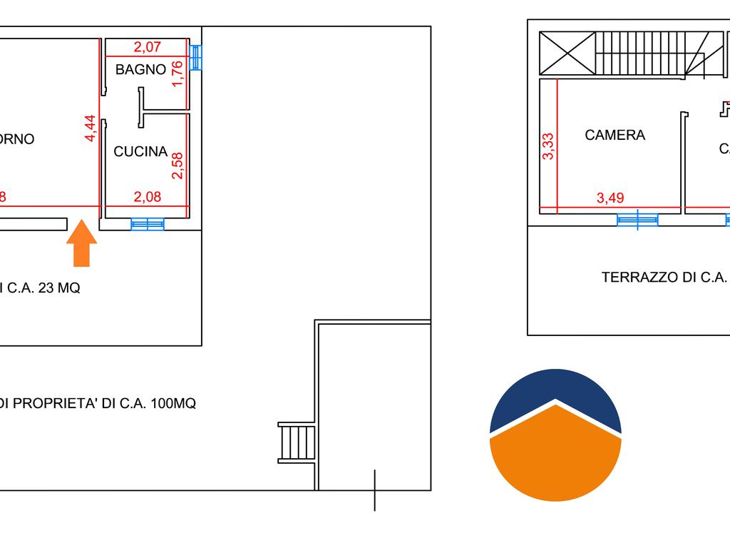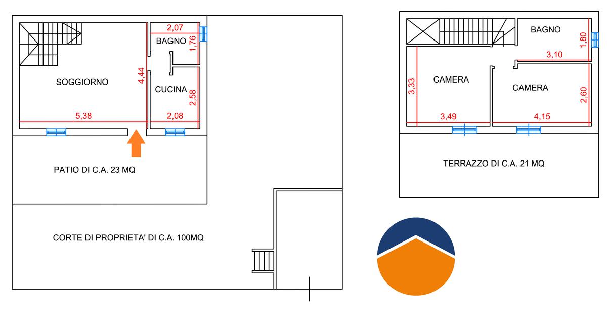 l’ingresso si apre su un comodo patio di 23 mq che permette di godere di un momento di convivialità e relax all’area aperta.