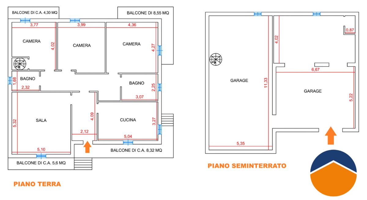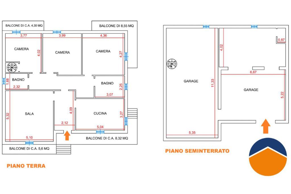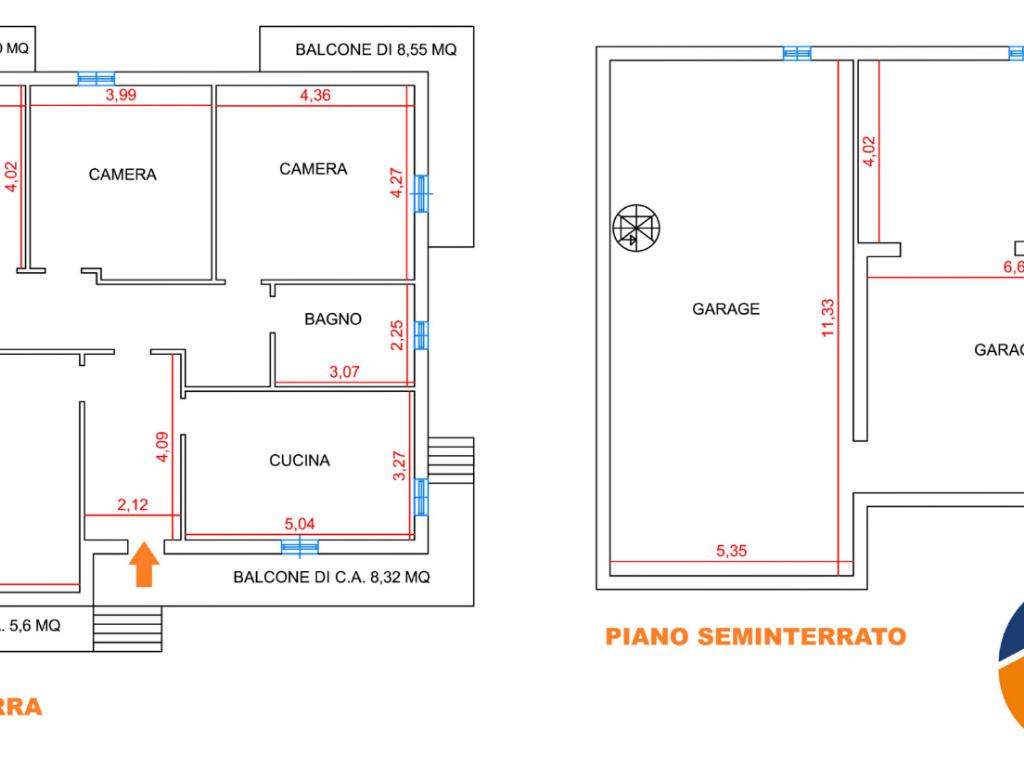 La soluzione è inoltre collegata al piano seminterrato, composto da un garage di circa 92 mq, attualmente adibito a sala hobby con camino.